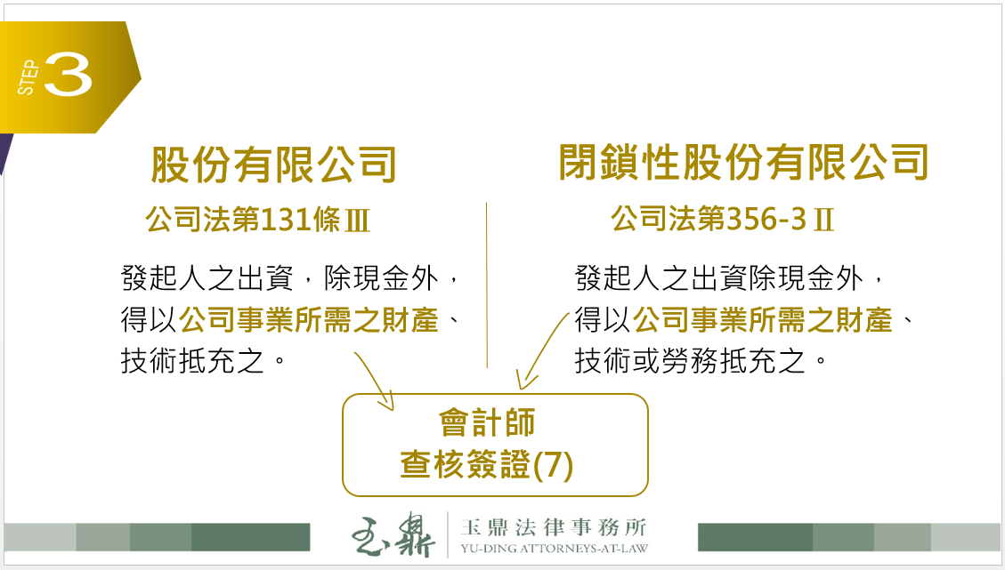 這裡所謂「公司事業所需之財產」,經濟部函釋明文承認(經濟部66.1.10經商字第632號函、102.12.23經商字第10202145030號函),包括「其他公司的股份或出資額」。所以當我要另行設立A、B閉鎖性公司時,大發公司原有的家族股東,就可以將持有的大發公司股份當作出資,來抵充原本應該繳的A、B公司股款。當然這樣的作法因涉及公司資本的確實性,所以必須經由會計師查核簽證。