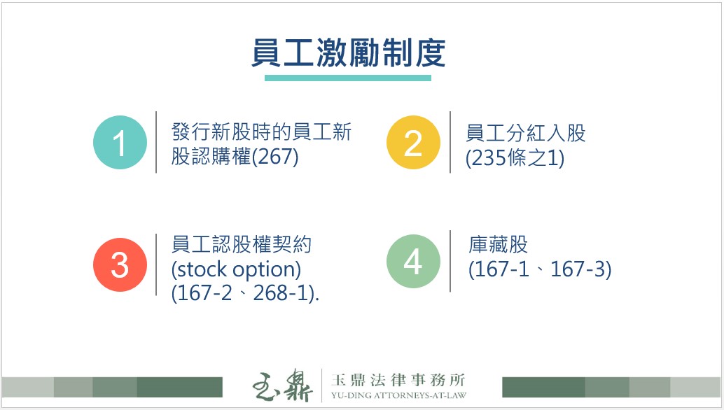 接著我們就開始介紹,公司法中有哪些員工激勵制度,以及具體的作法,但探討一個制度不能只從單一角度,所以我們另外會由現行所得稅法、產創條例規定的面向,探討員工激勵制度在稅務方面公司及員工應該注意的重點。