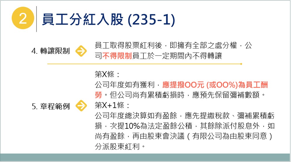 員工取得股票紅利後,依公司法第163條股份自由轉讓原則,員工就取得之股份即擁有全部之處分權,公司不得限制員工於一定期間內不得轉讓。