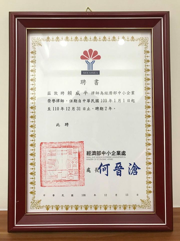 您好~您尚未登入 Home 玉鼎新訊 本所賴威平律師榮幸受聘擔任經濟部中小企業處第109、110年度榮譽律師! 返回列表 本所賴威平律師榮幸受聘擔任經濟部中小企業處第109、110年度榮譽律師! 2020-01-31 感謝 經濟部中小企業處 的信任與肯定, 本所 #賴威平律師 榮幸受聘109年度、110年度之榮譽律師! Share this : 其他文章 日期 標題 2020-10-26 本所江楷強律師榮幸獲邀經濟部中小企業處中小企業經營法規推廣講座講師 2020-08-26 本所江楷強律師榮幸獲邀台中市政府勞工局109年度勞動基準法令宣導會 2019-03-01 玉鼎所內課程(2019.03) 2019-02-01 玉鼎所內課程(2019.02) 2018-08-01 玉鼎所內課程(2018.08) × 律師介紹 專攻領域 一般民商事件, 刑事事件, 仲裁事件, 保全程序事件, 契約撰擬 建築工程事件, 公司事件, 證券 學歷 日本慶應大學法學部研究 日本名城大學法學碩士 國立政治大學法學士 經歷 寰瀛法律事務所主持律師(1997年6月1日迄今) 中華民國仲裁協會仲裁人(2000年1月1日迄今) 專利代理人(2002年8月14日迄今) 臺灣臺北地方法院所屬民間公證人(2002年12月10日迄今) 中華工程仲裁協會仲裁人(2003年1月28日迄今) 2010年中華民國銀行商業同業公會全國聯合會委託研究計畫「債務清理法草案之研究」計畫協同主持人 2007年11月中央存款保險公司委託研究計畫「委託規劃『銀行清理作業』」首席研究員 2006年1月經濟部委託研究計畫「企業併購法之法制檢討委辦計畫」共同計畫主持人 2005年經濟部委託研究計畫「研擬公平債務催收行為法草案委辦計畫」計畫主持人 2002年4月經建會委託研究計畫「公營事業結束營業或破產時之善後問題研究」研究顧問 大正法律事務所主持律師(1987年6月1日~1997年5月31日) 臺灣臺北地方法院法官(1979年3月1日~1987年5月13日)