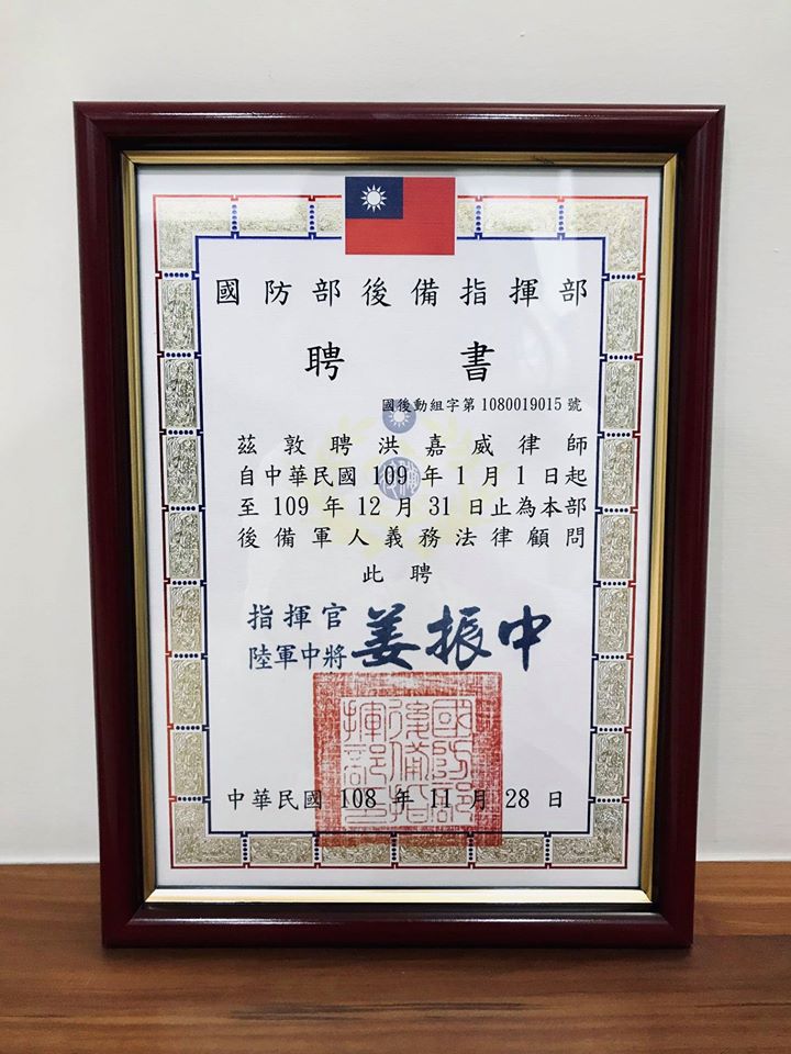 您好~您尚未登入 Home 玉鼎新訊 本所洪嘉威律師再次榮幸受聘擔任109年度後備軍人義務法律顧問! 返回列表 本所洪嘉威律師再次榮幸受聘擔任109年度後備軍人義務法律顧問! 2020-01-31 感謝 國防部後備指揮部 之信任與支持, 本所 洪嘉威 律師再次榮幸受聘擔任109年度 #後備軍人義務法律顧問! Share this : 其他文章 日期 標題 2025-04-30 玉鼎所內課程(2025.05-06) 2024-06-03 玉鼎所內課程(2024.06) 2023-11-01 玉鼎所內課程(2023.11) 2021-11-02 本所洪嘉威律師榮幸獲邀台中市政府勞工局110年度第四季勞動基準法令宣導 2020-08-26 本所洪嘉威律師榮幸獲邀台中市政府勞工局109年度勞動基準法令宣導會 × 律師介紹 專攻領域 一般民商事件, 刑事事件, 仲裁事件, 保全程序事件, 契約撰擬 建築工程事件, 公司事件, 證券 學歷 日本慶應大學法學部研究 日本名城大學法學碩士 國立政治大學法學士 經歷 寰瀛法律事務所主持律師(1997年6月1日迄今) 中華民國仲裁協會仲裁人(2000年1月1日迄今) 專利代理人(2002年8月14日迄今) 臺灣臺北地方法院所屬民間公證人(2002年12月10日迄今) 中華工程仲裁協會仲裁人(2003年1月28日迄今) 2010年中華民國銀行商業同業公會全國聯合會委託研究計畫「債務清理法草案之研究」計畫協同主持人 2007年11月中央存款保險公司委託研究計畫「委託規劃『銀行清理作業』」首席研究員 2006年1月經濟部委託研究計畫「企業併購法之法制檢討委辦計畫」共同計畫主持人 2005年經濟部委託研究計畫「研擬公平債務催收行為法草案委辦計畫」計畫主持人 2002年4月經建會委託研究計畫「公營事業結束營業或破產時之善後問題研究」研究顧問 大正法律事務所主持律師(1987年6月1日~1997年5月31日) 臺灣臺北地方法院法官(1979年3月1日~1987年5月13日)