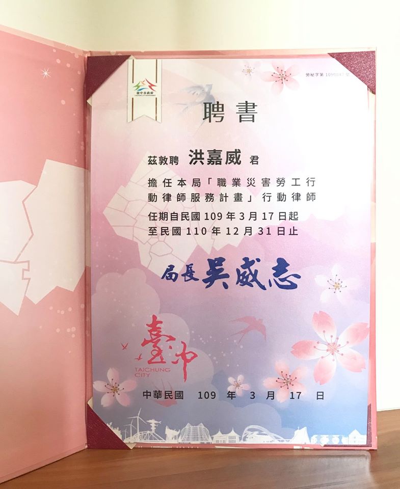 您好~您尚未登入 Home 玉鼎新訊 本所洪嘉威律師榮幸受聘勞工局「職業災害勞工行動律師服務計畫」第109年度至110年度之行動律師 返回列表 本所洪嘉威律師榮幸受聘勞工局「職業災害勞工行動律師服務計畫」第109年度至110年度之行動律師 2020-04-28 感謝 台中市政府勞工局 的信任與肯定, 本所 洪嘉威 律師 榮幸受聘「#職業災害勞工行動律師服務計畫」第109年度~110年度之行動律師~! Share this : 其他文章 日期 標題 2025-10-01 玉鼎所內課程(2025.11-12) 2021-12-08 本所洪嘉威律師榮幸獲邀台中市政府勞工局110年度第四季勞動基準法令宣導 2020-08-26 本所江楷強律師榮幸獲邀台中市政府勞工局109年度勞動基準法令宣導會 2020-06-02 本所呂旺積律師榮幸獲邀台中市政府勞工局109年度勞動基準法令宣導會! 2019-05-01 玉鼎所內課程(2019.05) × 律師介紹 專攻領域 一般民商事件, 刑事事件, 仲裁事件, 保全程序事件, 契約撰擬 建築工程事件, 公司事件, 證券 學歷 日本慶應大學法學部研究 日本名城大學法學碩士 國立政治大學法學士 經歷 寰瀛法律事務所主持律師(1997年6月1日迄今) 中華民國仲裁協會仲裁人(2000年1月1日迄今) 專利代理人(2002年8月14日迄今) 臺灣臺北地方法院所屬民間公證人(2002年12月10日迄今) 中華工程仲裁協會仲裁人(2003年1月28日迄今) 2010年中華民國銀行商業同業公會全國聯合會委託研究計畫「債務清理法草案之研究」計畫協同主持人 2007年11月中央存款保險公司委託研究計畫「委託規劃『銀行清理作業』」首席研究員 2006年1月經濟部委託研究計畫「企業併購法之法制檢討委辦計畫」共同計畫主持人 2005年經濟部委託研究計畫「研擬公平債務催收行為法草案委辦計畫」計畫主持人 2002年4月經建會委託研究計畫「公營事業結束營業或破產時之善後問題研究」研究顧問 大正法律事務所主持律師(1987年6月1日~1997年5月31日) 臺灣臺北地方法院法官(1979年3月1日~1987年5月13日)