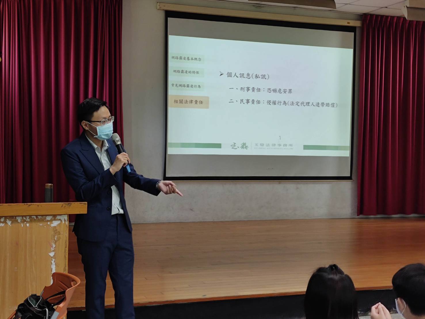 您好~您尚未登入 Home 玉鼎新訊 本所洪嘉威律師榮幸獲邀財團法人法律扶助基金會彰化分會法治教育宣導講師! 返回列表 本所洪嘉威律師榮幸獲邀財團法人法律扶助基金會彰化分會法治教育宣導講師! 2022-09-20 洪嘉威律師--財團法人法律扶助基金會彰化分會 監所、校園法治教育宣導 「校園法治教育--網路霸凌」 感謝 法律扶助基金會彰化分會 邀請,本所合署 洪嘉威 律師榮幸受邀向富山國小的同學們進行校園法治教育宣導,並分享實務案例經驗~ 活動照片- Share this : 其他文章 日期 標題 2026-03-23 玉鼎所內課程(2026.03-04) 2023-12-08 本所賴威平律師榮幸受聘擔任彰化縣政府113-114年度法律扶助顧問律師! 2021-03-08 玉鼎所內課程(2021.03) 2020-10-23 本所呂旺積律師榮幸獲邀台中市政府勞工局109年度勞動基準法令宣導會 2018-12-01 玉鼎所內課程(2018.12) × 律師介紹 專攻領域 一般民商事件, 刑事事件, 仲裁事件, 保全程序事件, 契約撰擬 建築工程事件, 公司事件, 證券 學歷 日本慶應大學法學部研究 日本名城大學法學碩士 國立政治大學法學士 經歷 寰瀛法律事務所主持律師(1997年6月1日迄今) 中華民國仲裁協會仲裁人(2000年1月1日迄今) 專利代理人(2002年8月14日迄今) 臺灣臺北地方法院所屬民間公證人(2002年12月10日迄今) 中華工程仲裁協會仲裁人(2003年1月28日迄今) 2010年中華民國銀行商業同業公會全國聯合會委託研究計畫「債務清理法草案之研究」計畫協同主持人 2007年11月中央存款保險公司委託研究計畫「委託規劃『銀行清理作業』」首席研究員 2006年1月經濟部委託研究計畫「企業併購法之法制檢討委辦計畫」共同計畫主持人 2005年經濟部委託研究計畫「研擬公平債務催收行為法草案委辦計畫」計畫主持人 2002年4月經建會委託研究計畫「公營事業結束營業或破產時之善後問題研究」研究顧問 大正法律事務所主持律師(1987年6月1日~1997年5月31日) 臺灣臺北地方法院法官(1979年3月1日~1987年5月13日)